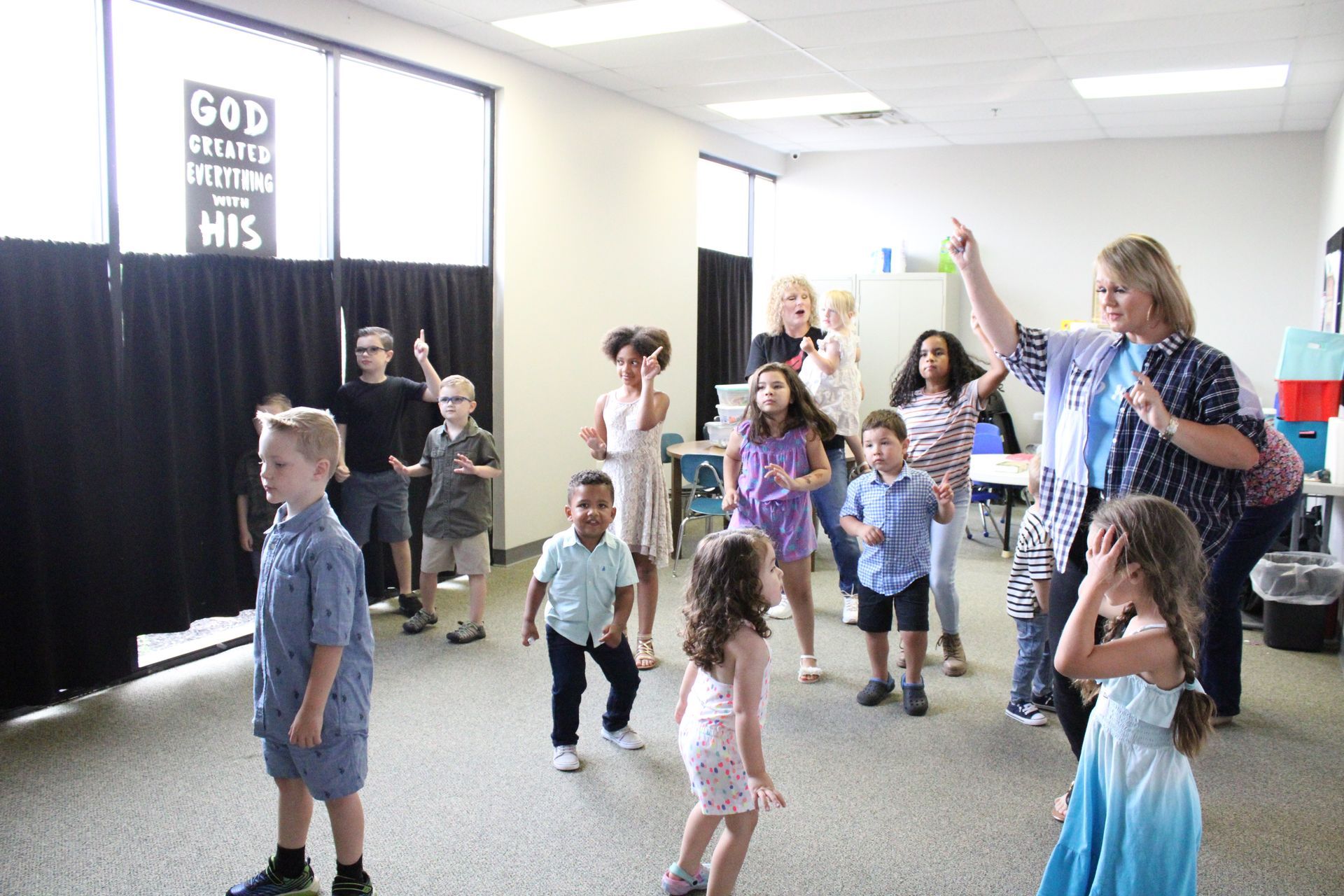 We believe you are never too young to begin worship and learn about the Bible. Our classes, starting as young as 2 years old, have a time of worship and learn a Bible story every week. Our baby classes have worship music playing throughout the morning while they play and explore. We also have a time for crafts and games that are centered around Bible-based fun!